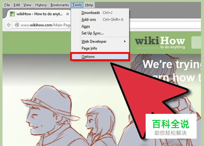 将鼠标悬停在“选项”菜单。选择“选项” 。