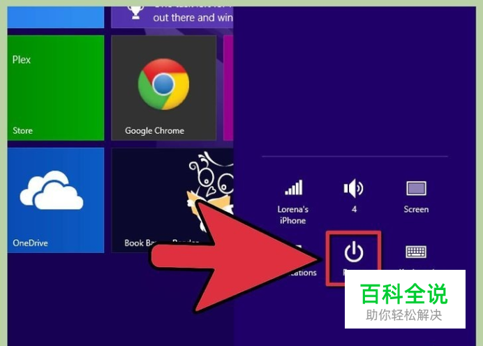 在Windows 8加载后点击或轻触登录屏幕上的"电源"图标。