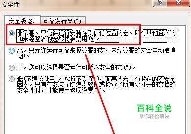 在安全性对话框中,我们勾选非常高:只允许预定安装在受信任位置的宏。然后点击确定,这样宏病毒就安全一些了。