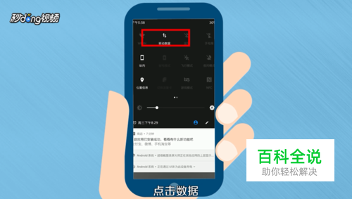 没有WiFi则下拉通知栏,点击“数据”,让电脑通过无线流量进行上网。