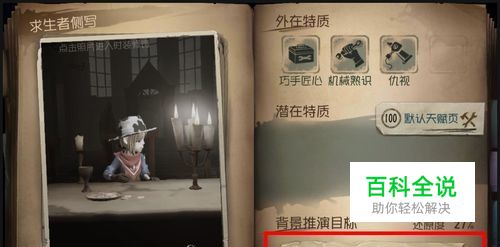 另一面是园丁的专属时装,需要通过背景推演才能够得到该皮肤,玩家可以在求生者侧写也就是主界面右下角的书里找到背景推演目标。