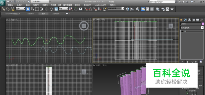 形态调整后关闭【缩放变形】按钮,在修改器窗口中将【图形】激活,在前视图框选创建的窗帘,在修改器中选择Loft下的“图形”子对象,然后在视图中选择曲线,再单击【左】或【右】按钮,目的是让路径偏离形体一端,这样窗帘就不对称了。