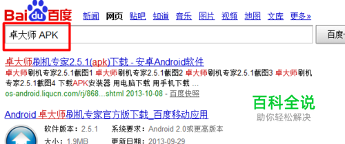 首先我们上网搜索下载“卓大师刷机”APK程序。