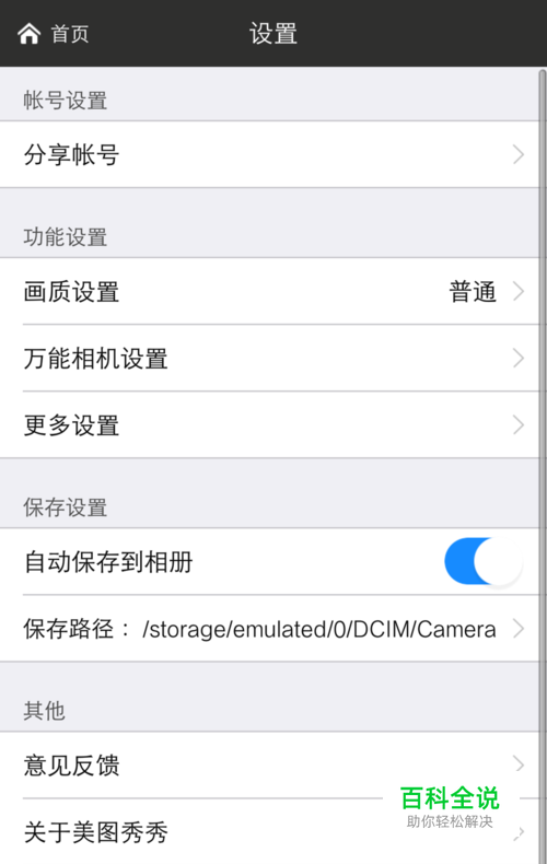 美图秀秀如何设置前摄像头镜像、关闭相机音效?