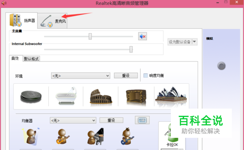 点击【realtek高清晰音频管理器】按钮,进入配置界面,如下图: