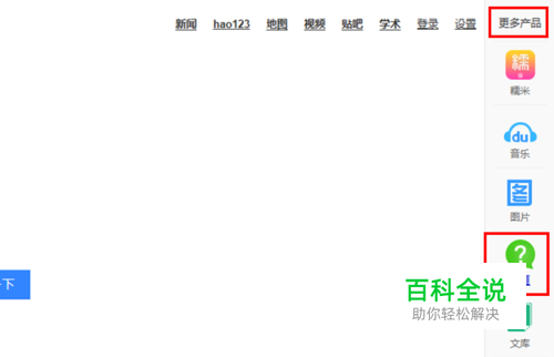 第一步,打开知道。首先打开浏览器进入百度首页,然后鼠标指向右上角的【更多产品】,接着点击右侧栏中的【知道】(进入百度知道的方法有很多,这里我只介绍了最简便的一种),如下图所示: