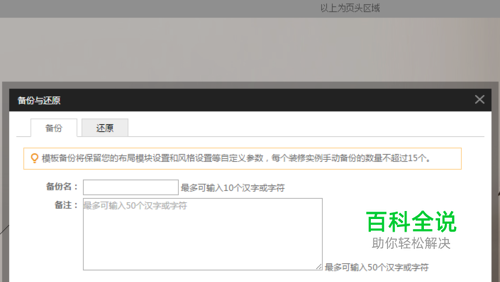 第三步,备份完后,你就可以进行装修了,当然你装修好了也注意要备份哦,要不然恢复装修之前的页面,你的装修不就白费了吗!?所以要注意合理的进行备份和还原,这样可以使得你在接下来的装修中更加方便和快捷。