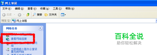 双击电脑桌面上的“网上邻居”图标,在网上邻居窗口点左侧“查看网络连接”