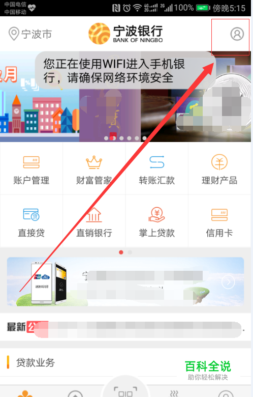 打开后点击页面右上角图标登录手机银行。