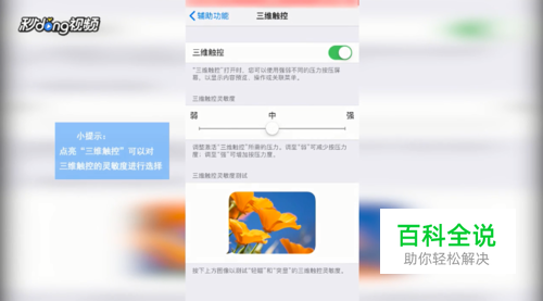 点亮“三维触控”,对三维触控的灵敏度进行选择。