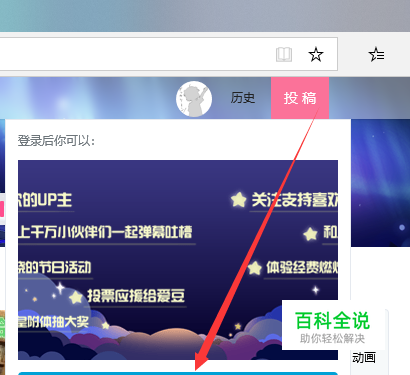 然后将鼠标光标移到页面上端的我们的哔哩哔哩头像