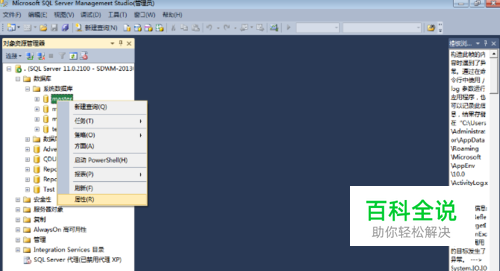 建议将文件导入到SQL SERVER默认的存储数据库的地方。SQL Server存储数据库的文件夹查看方式如下:打开SQL Server Management Studio,连接到SQL Server,进入Management Studio,然后依次点开数据库->系统数据库,找到master数据库,然后单击master,按下右键,在弹出的快捷菜单中选择属性,出现属性窗口。