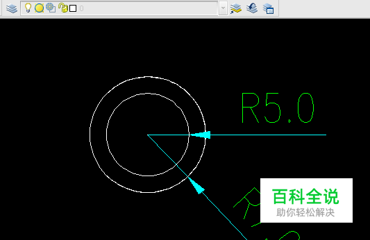 用剪切tr命令剪去水平直线与大圆相交的部分。