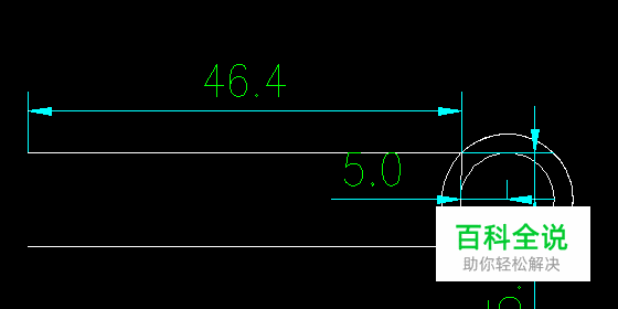 沿着圆心水平向左到与小圆相交的位置,再向上与大圆相交的位置为起点,画一条46.4mm的直线,再镜像出另外一条直线。