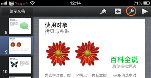 另外我们还可以点击屏幕左上角的设置图标,里面也可以找到关于如何使用 Keynote 的帮助信息,如下图所示
