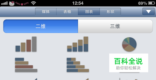 我们可以在每一个幻灯页面上,添加文字,图表,表格和媒体。选择左边窗格的幻灯页面,再点击屏幕右上角的“ +”图标,可以添加很多对象,如下图所示
