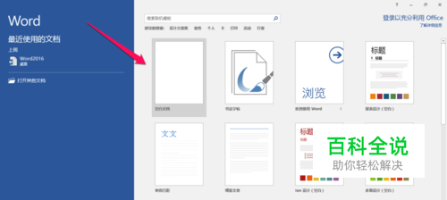启动Word2016,启动时就已经是在新建模板的界面了。