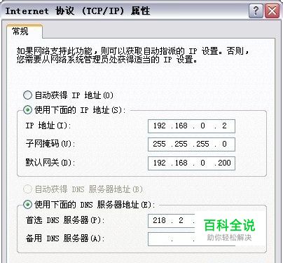 获取内网IP地址(可以是用于配置无线路由的IP地址):打开网上邻居,查看网络连接,选中本地连接,右键选中属性,双击tcp/ip,将ip地址,子网掩码,网关和DNS都记录下来。