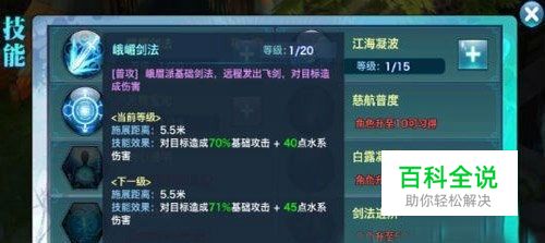 江海凝波是峨眉技能中攻击力排第二位的技能,有较强的杀伤力,但发动时要注意方向。因敌人在对战时常常移动,故较难准确攻击敌人,效果下降,因此小编推荐在第五位加满。