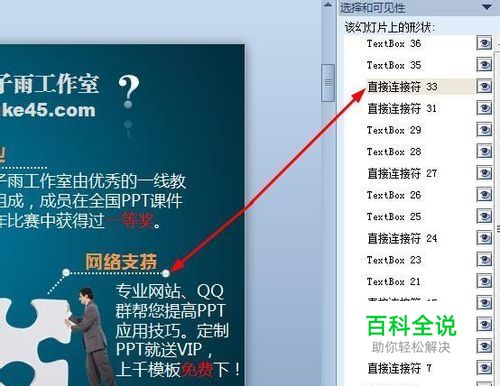 3.调整对象的层级。以往,我们调整对象的层级是通过右键单击对象,选择“置于顶层”之类的来实现,繁琐不说更关键的是不直观。通过“选择窗格”我们可以清楚的看出该对象所在的层级位置了,调整也很方便。