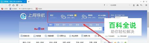 1.打开浏览器之后,在首页的上方显示着我们目前的所在地、天气、日期、空气质量等,让我们一打开就掌握当天的信息,如果想要知道详细的内容点击即可。