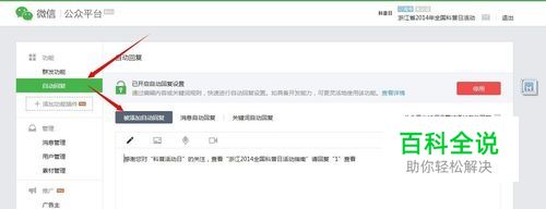 点击自动回复----被添加自动回复----填好内容,内容设置好后去设置关键词