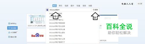 首先,在IE浏览器的地址栏输入关键词:Microsoft账户→搜索。