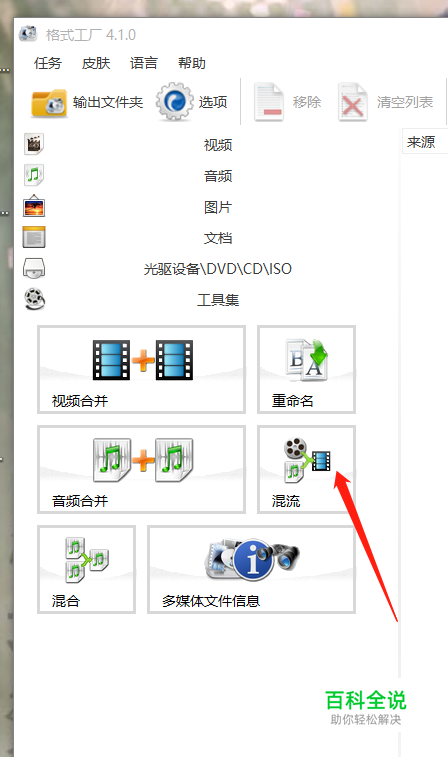 在主会话框中会有视频流和音频流两个选择,根据位置添加进去内容。