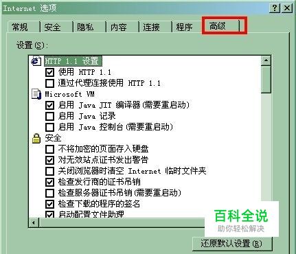切换至高级选项卡标签,找到“启用第三方浏览器扩展”选项。把前面复选框的打勾去掉;