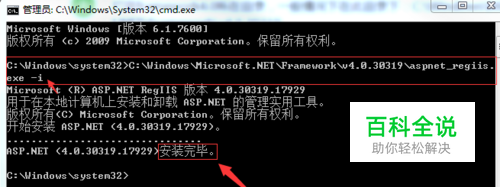 在dos窗口中,后面按空格键,然后输入 -i 参数。(C:\Windows\Microsoft.NET\Framework\v4.0.30319\aspnet_regiis.exe -i) 输入完毕后,回车即安装framework4.0到iis上。