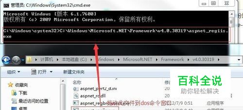 拖动aspnet_regiis.exe文件到第二步打开的dos命令窗口。
