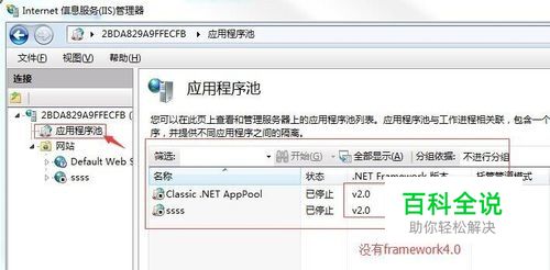 打开iis,确认一下framework4.0是否已经安装。 开始->控制面板->管理工具->Internet信息服务->应用程序池(左边栏)->观察右边主界面.net framework版本栏,是否已经安装过了。
