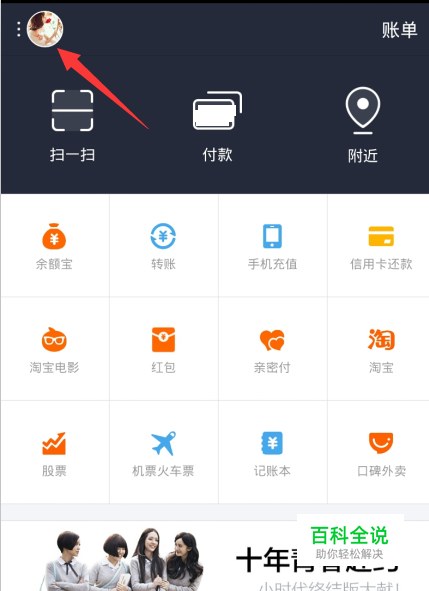 首先先登录我们的支付宝账号,然后单击自己的头像按钮。