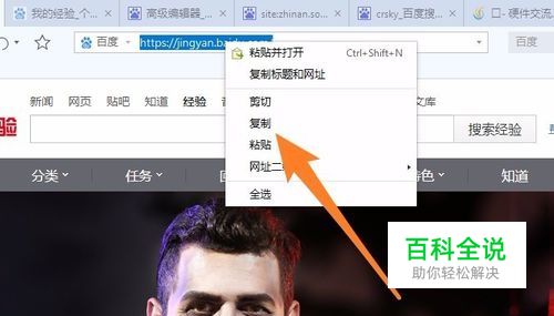在地址栏上点击鼠标右键选择复制。如图所示。