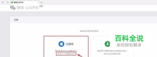 点击确认邮件中的链接之后,进入第三步,选择类型。这里我们选择适合个人和组织的“订阅号”。