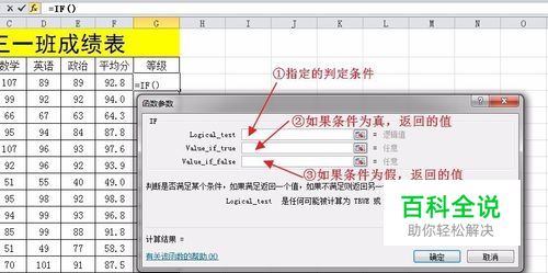 认识条件函数IF中各参数含义:函数包含三个参数,第1个参数是判定的条件,第2个参数是如果判定条件为真,返回的值;第3个参数是如果判断条件为假,返回的值。