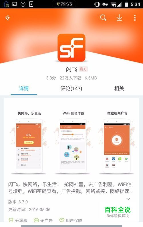 然后前往应用宝或360手机商店下载一款名为《闪飞》的网络抢网神器