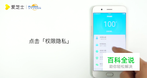点击手机管家,然后点击“权限隐私”。