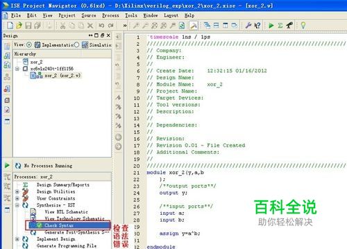 双击behavior CheckSyntax 进行语法错误的检查(针对Testbench)