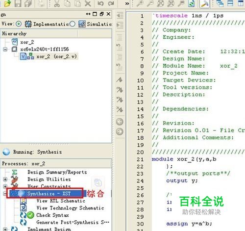 双击 Synthesis–XTS,进行综合,得到资源使用,频率等分析结果。