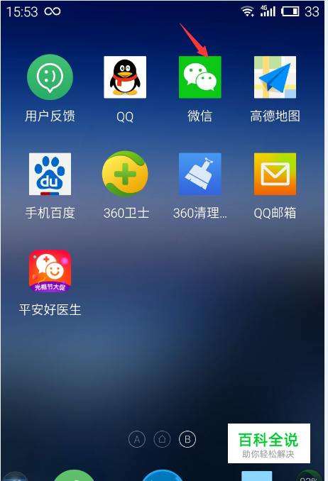 在手机上首先找到微信点击进入