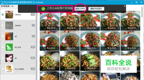 相册成功导出,左上角会有提示。你可以点击“查看文件夹”去查看你导出的照片。