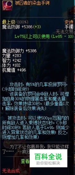 第二种是被囚手铐,属性是攻击有5%几率投掷罗网,团本下这个属性也可以触发