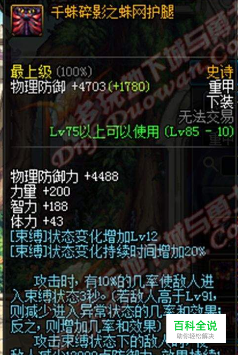 第一种是千猪裤子,属性是10%几率束缚,在团本里这个属性也可以触发