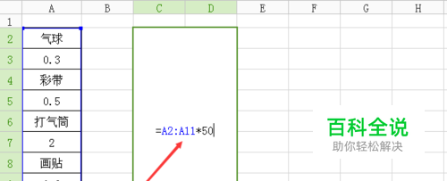 例如学校举行活动,要购买一些物品做装饰,每种物品都购买了50份,用公式快速的计算出购买总价。 如图所示,可以使用数组,直接将数组乘以50就可以了。 函数是=A2:A6*50,想法是正确的,但是结果却是#VALUE!