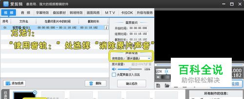 方法1:在音轨处对视频进行消音 先把视频导入到爱剪辑后,然后在中央的声音设置那里,将使用音轨选择为“消除原片声音”就行了。