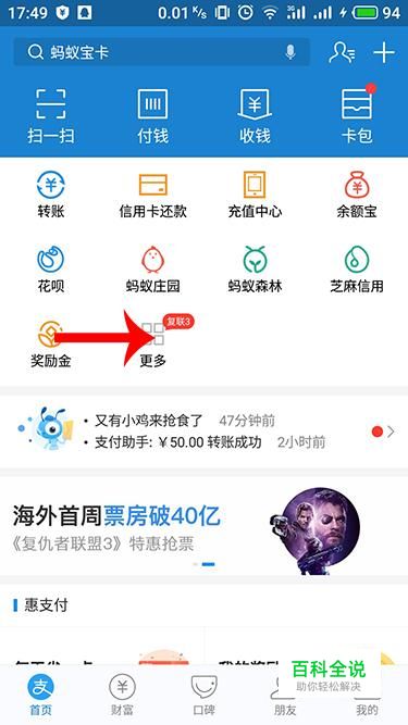 进入支付宝APP首页,点击“更多”