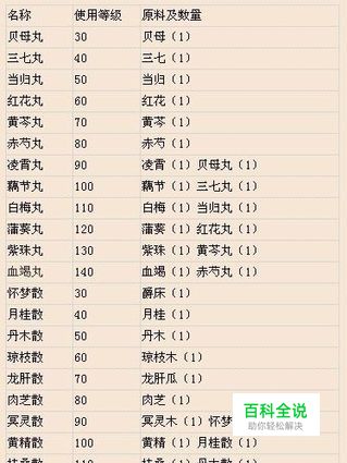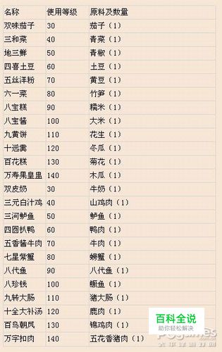 三、种植原料 种植原料的所需要的技能等级如下图: