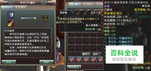 打孔的数量跟打孔道具有关,数量分别为1孔、2孔、3孔;打孔装备必须为“可打孔”的装备,否则不可给装备打孔。
