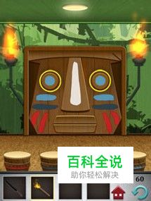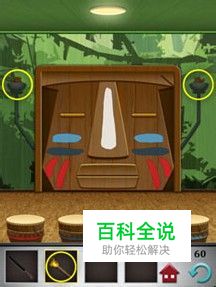 根据印第安人脸上的各种颜色的条条,红色4条,深蓝色2条,白色1条,浅蓝色4条。按照对应的次数依次敲击电梯门口对应颜色的鼓即可打开电梯门。
